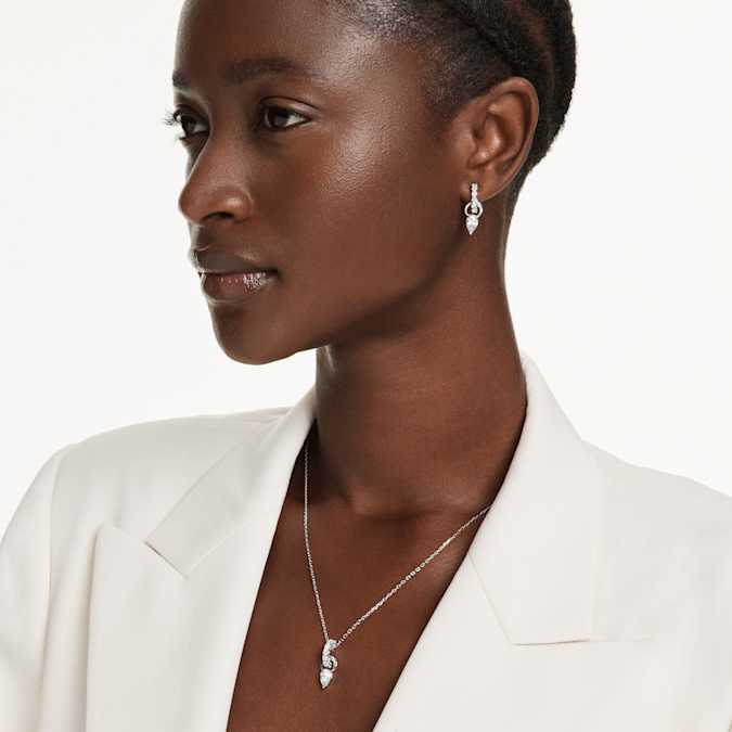 Mesmera Set Pear Cut, Round Cut, White, Rhodium Plated