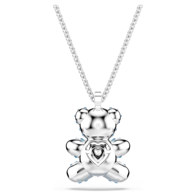 Teddy Pendant Bear, Blue, Rhodium Plated