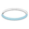 This versatile bangle is your instant glamour fix. Shimmering rows of crystal pavé in serene aquamarine adorn a silver-tone stainless steel band with a fully integrated closure. Style it solo or go for bold by stacking it with other colorful bangles.